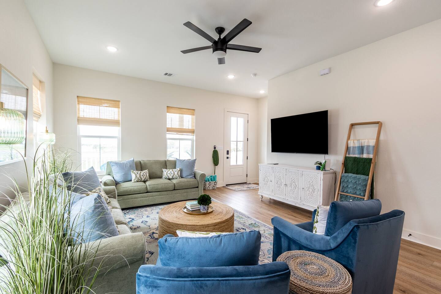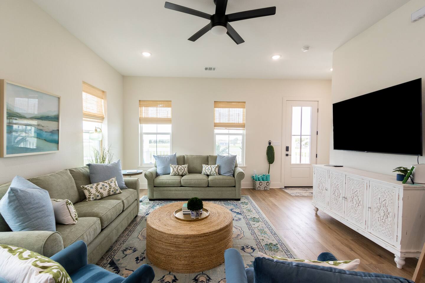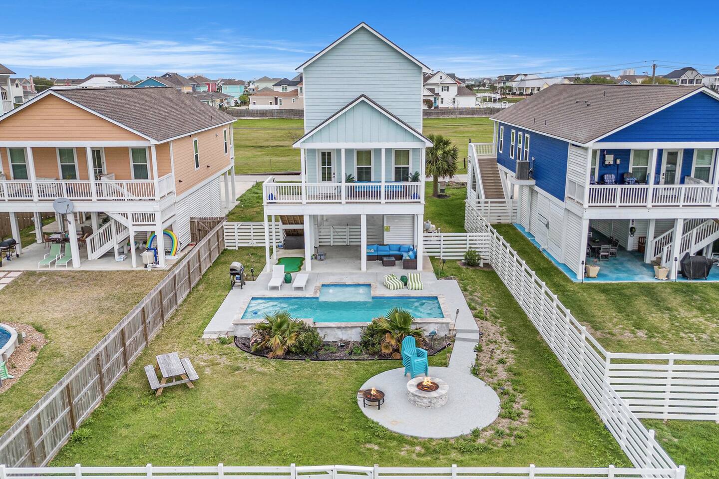 "Slides and Tides" is a BRAND NEW build in Galveston Tx. It features 4 bedrooms, and 3.5 beautiful bathrooms. Relax and enjoy your family vacation in this professionally decorated beach themed house. The parents will enjoy the large pool with a waterfall and bubblers w/ tanning ledge. Pool completion by 3/15/24. The kids will love the bunk room w/slide. The golfers will enjoy the location near the Moody gardens golf course and putting green. The 3 decks have views of the beach and bay